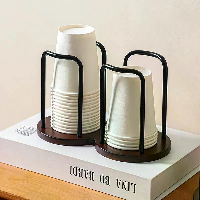 Wooden Paper Cup Holder For Disposable Cups Desktop Coffee Table Storage Shelf Tea Mug Organizer Kitchen Office Accessory