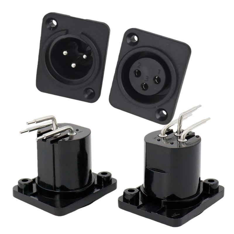 2/10Pcs Male Plug Straight Terminal Panel Mounted Connector 3 Pin Female Jack Panel Mount Black XLR Connector