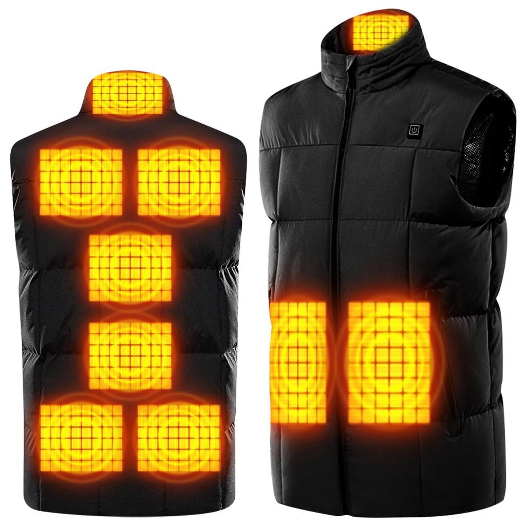 This advanced electric vest features nine built-in heaters for the back, neck, waist, and abdomen. Simply press the switch on the chest and your upper body will be warm in just 51 seconds. This electric inner vest features an intelligent dual-switch design, allowing you to control the front and back temperatures separately, adjusting the heating zone according to the weather. They can be heated separately or together.