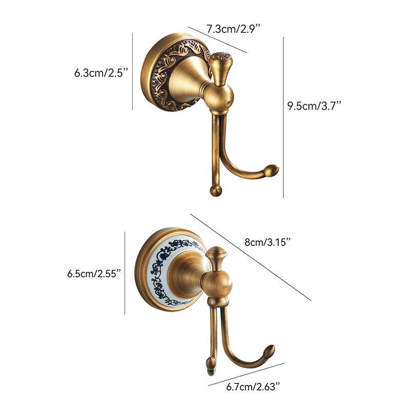 Antique Brass Gold Double Hook for Bathroom, Longhorn Robe and Towel Hook, Vintage Decorative Wall Mounted Accessories ELF82