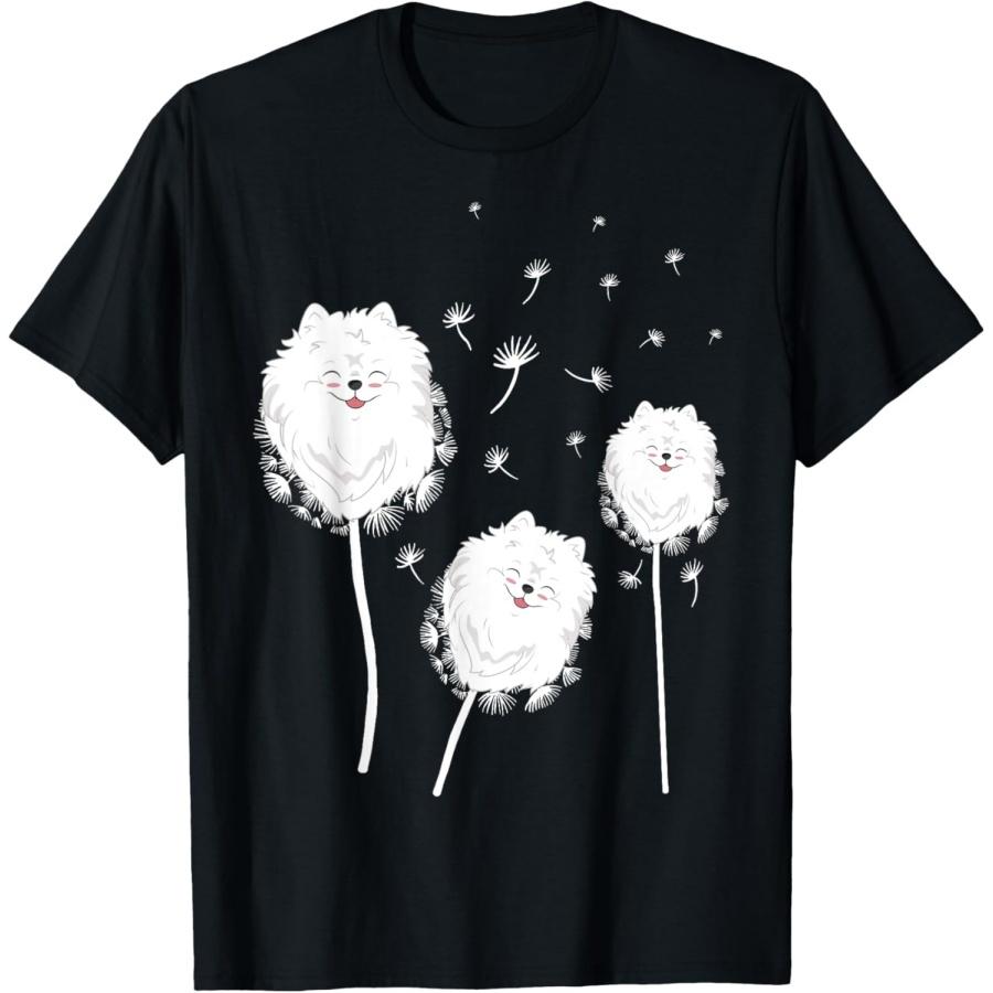 Pomeranian Dwarf Spitz Pom Dog Owner Dandelion Flower Men Women Girls Kids T-Shirt