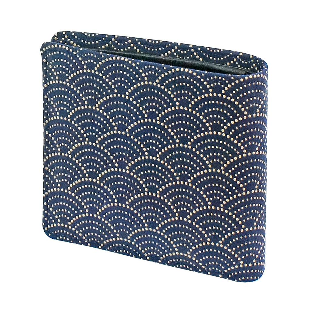 [Inden-ya] Inden Bifold Wallet with Bill Compartment C, Thin Deerskin Leather, Navy Blue with White Lacquer, Seigaiha Pattern, 2003-14-004