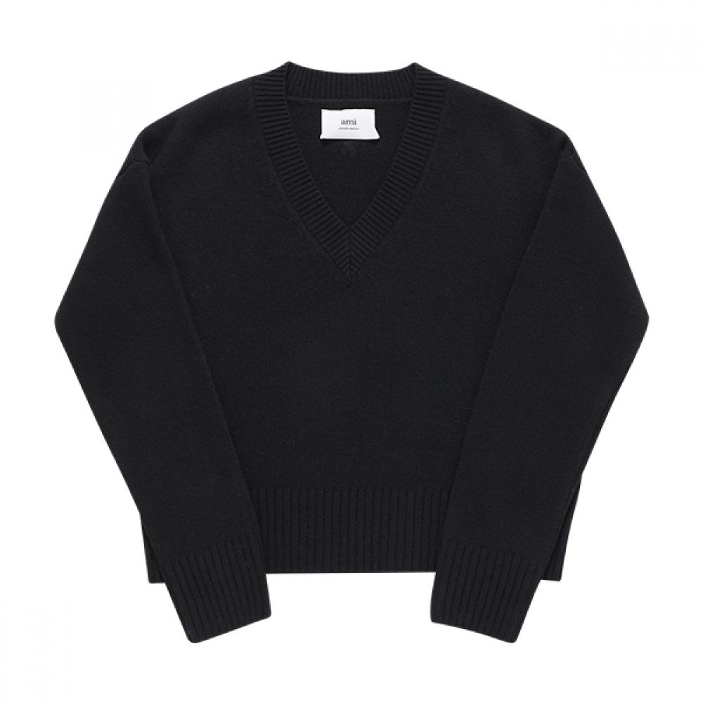 Ami Uks234 Kn0028 001 Ami De Coeur TOne On TOne Heart Logo V Neck Public Knit