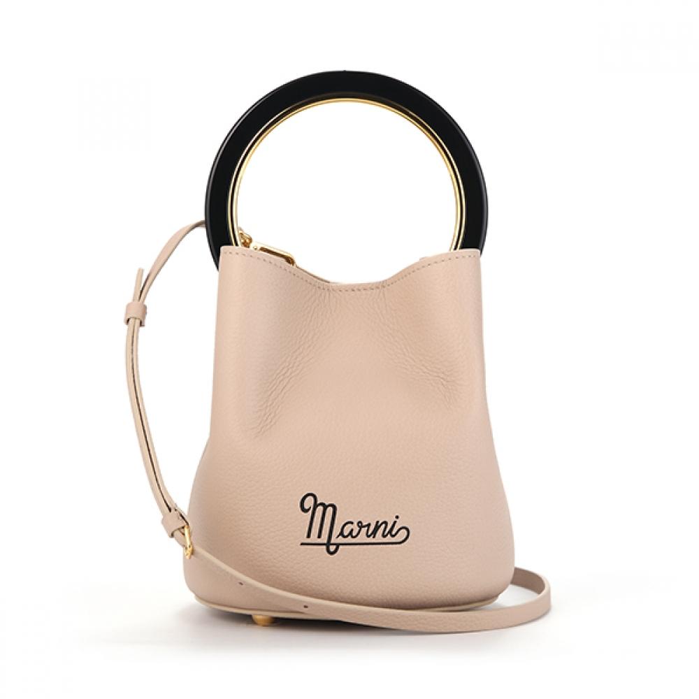The Marni SCMPU09T31 P4566 Z2B46 Panier Bucket Tote Bag combines the advantages of a bucket bag and a tote bag into a stylish design, making it a versatile everyday bag. Made from natural cowhide, this product ensures durability and offers a luxurious texture.