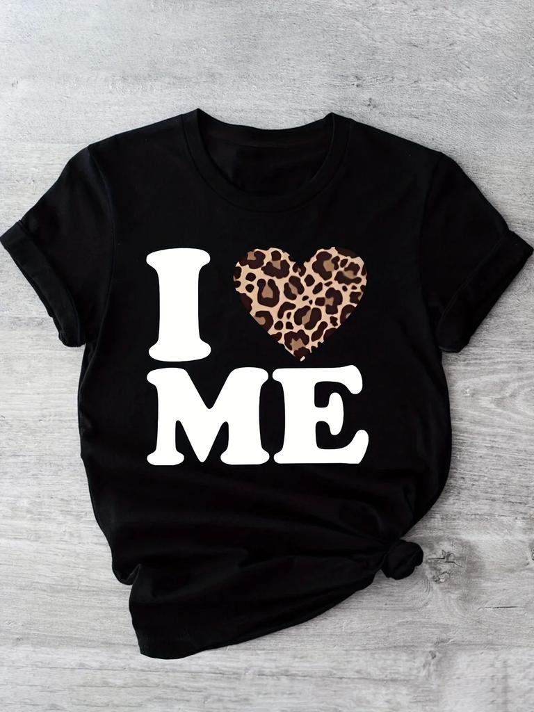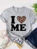 WomenS I Me Leopard Heart Print T-Shirt Casual Comfortable Crew Neck Short Sleeve Tee Perfect for Casual Attire Trendy Casual