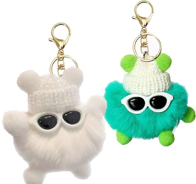 Lantty Girls' Car Keychain, Plush Keychain, Cute Fluffy Artificial Rabbit Hair Key Ring, Suitable for Girls, Women's Bags, Car Keychains (Style A)