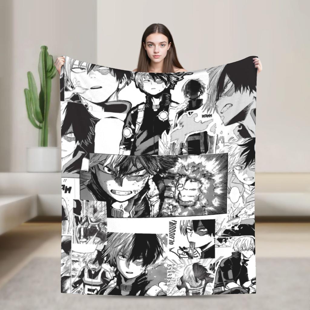 Todoroki Shoto Blankets My Hero Academia Anime Manga Fleece Vintage Warm Throw Blankets for Chair Covering Sofa Winter,