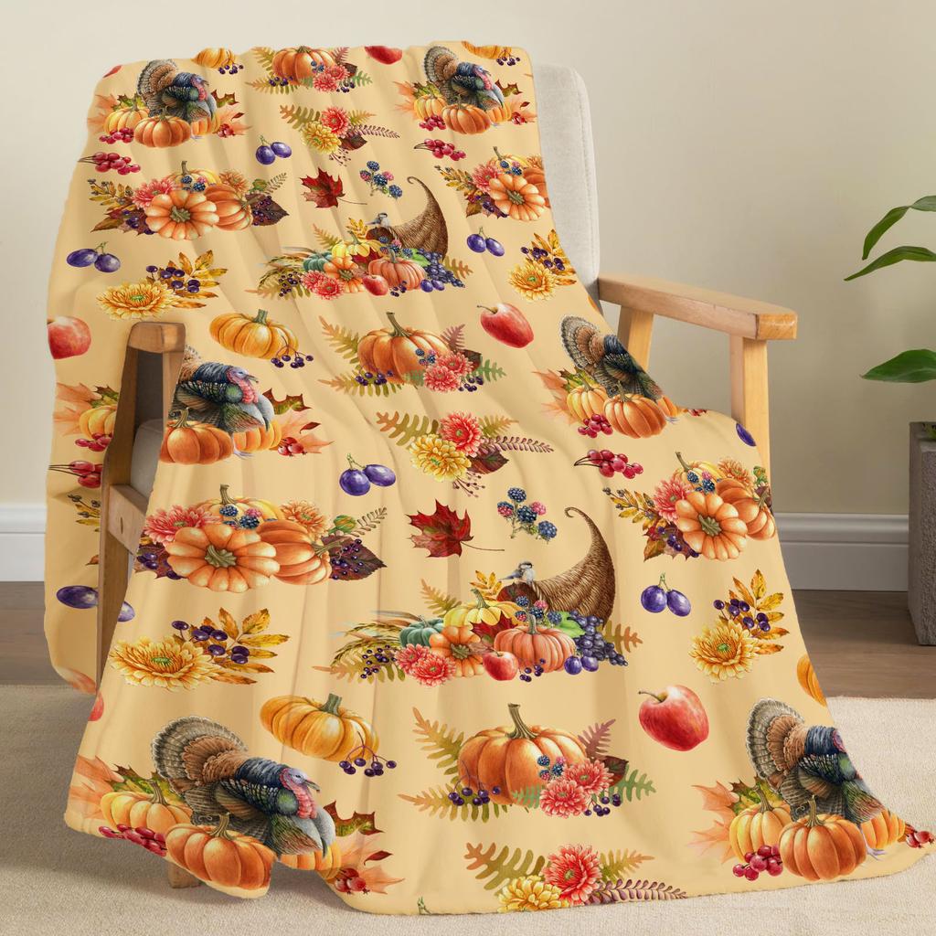 Fall Thanksgiving Throw Blanket Maple Leaf Pumpkin Flannel Print Blanket Super Soft Cozy Nap Blanket Perfect Home Gift for Her