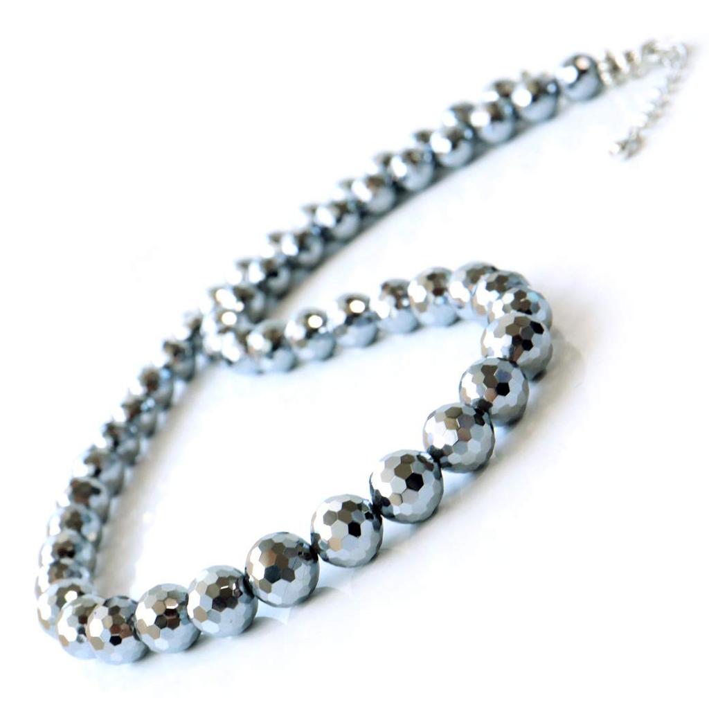 [GOLD STONE] Genuine Terahertz Ore Necklace, Mirror Cut, 8mm, 40cm, High Purity (99.999%), Sparkling Like a Mirror Ball