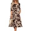 3/4 Sleeve Women's Dress Casual Flowy A-Line Midi Tshirt Dresses With Pockets Crewneck Vocation Boho Beach Sundress