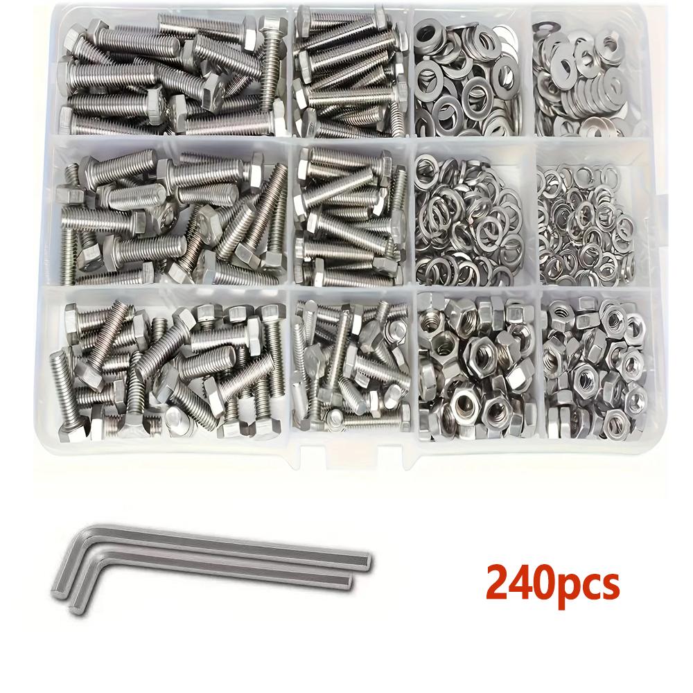 240 Pcs Stainless Steel Screws Nuts Washers Assortment Kit Rustproof Set for DIY Home Repair Industrial Use