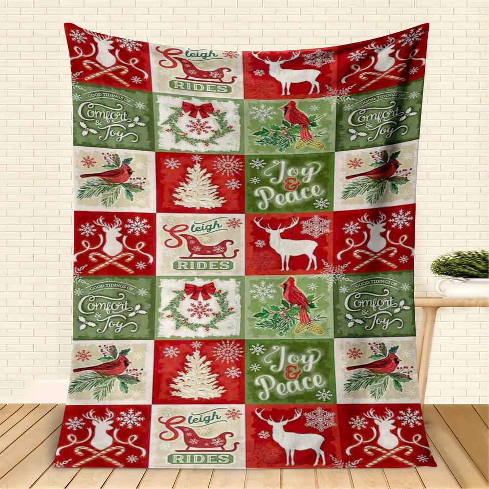 Christmas Patchwork Fleece Blanket Reindeer Cardinal Tree Pattern Soft Cozy Throw Blanket for Couch Lounging Ideal Gifts