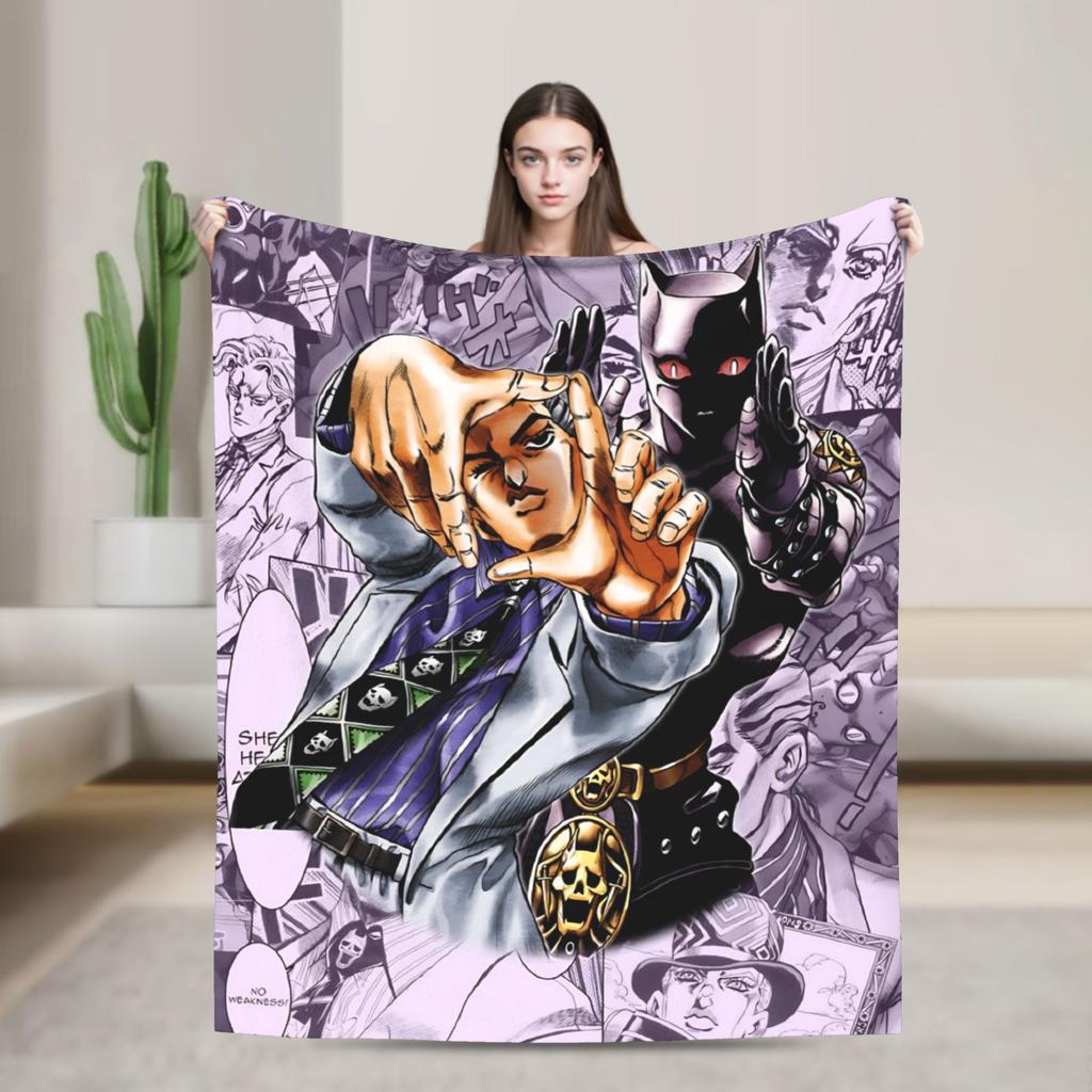 Bizarre Adventure Knitted Blanket Anime Flannel Throw Blanket Home Couch Decoration Soft Warm Bedspread