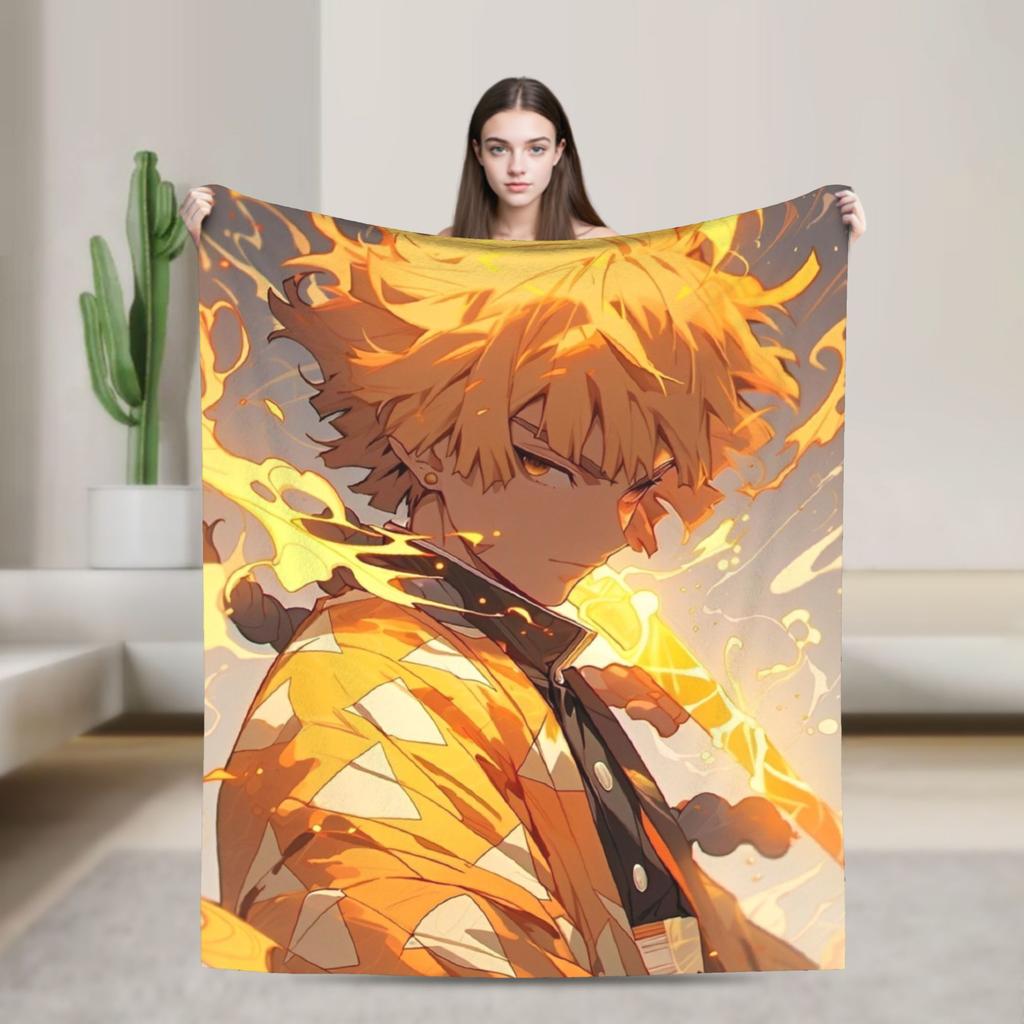 Kimetsu No Yaiba Zenitsu Anime Blanket Flannel Vintage Warm Throw Blankets for Chair Covering Sofa Decoration