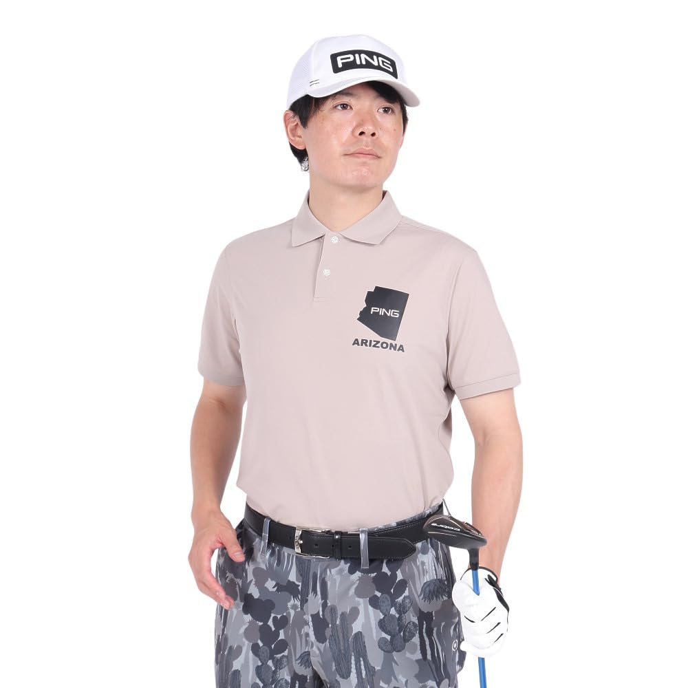 Ping Apparel Men's Short Sleeve Polo Shirt (Brand Logo, Stretch) / Golf / 621-4260807 040_Beige, Size L