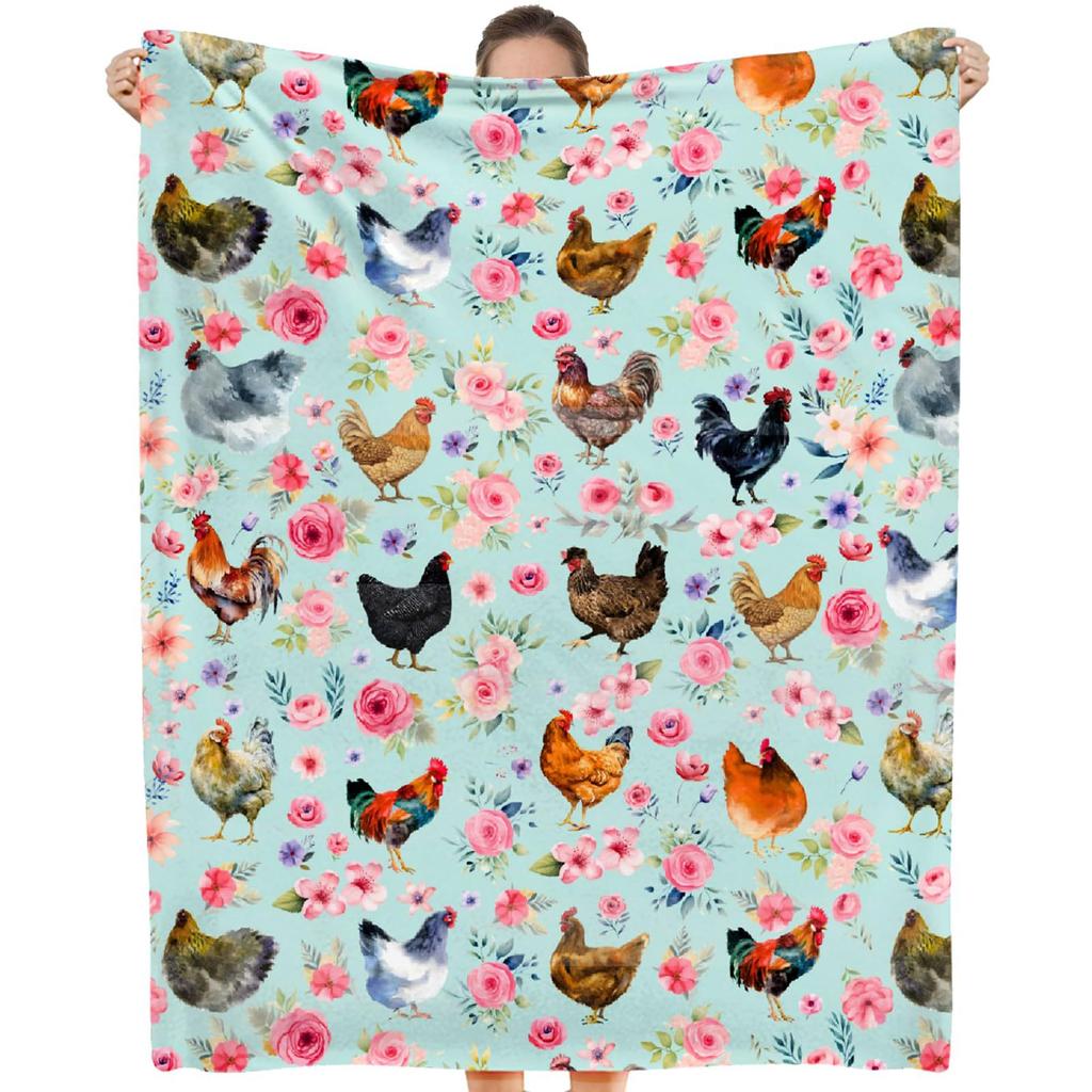 Chicken Flower Series Printed Blanket for Sofa Bed Travel Camping Living Room Office Conditioning Blanket for All Seasons Gifts