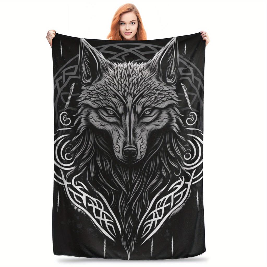 Viking Wolf Print Flannel Blanket Soft Warm All Season Throw for Couch Office Bed Camping Gift Idea