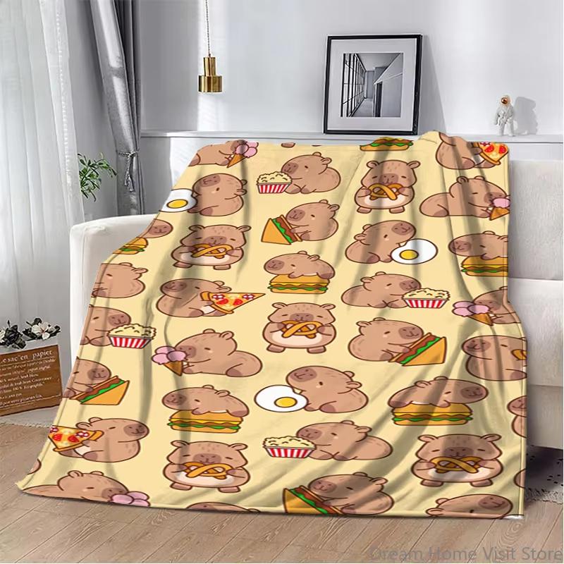 Ultra Soft Cartoon Capybara Pattern Flannel Throw Blanket Premium Plush Material For Bed Sofa Office Travel Picnic Camping