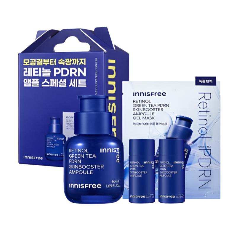 This special kit combines a large-size Retinol PDRN Ampoule, two travel-size ampoules, and a hydrating gel mask infused with the same key ingredients.