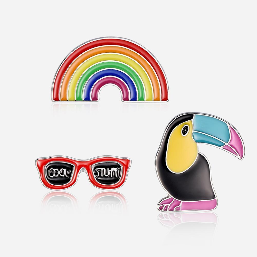 3PCS Lovely Colorful Cartoon Small Brooch Set Alloy Bag Clothes Lapel Pin