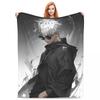 Gojo Satoru Knitted Blanket Anime Jujutsu Kaisen Flannel Throw Blanket Summer Air Conditioning Personalised Soft Warm Bedspreads