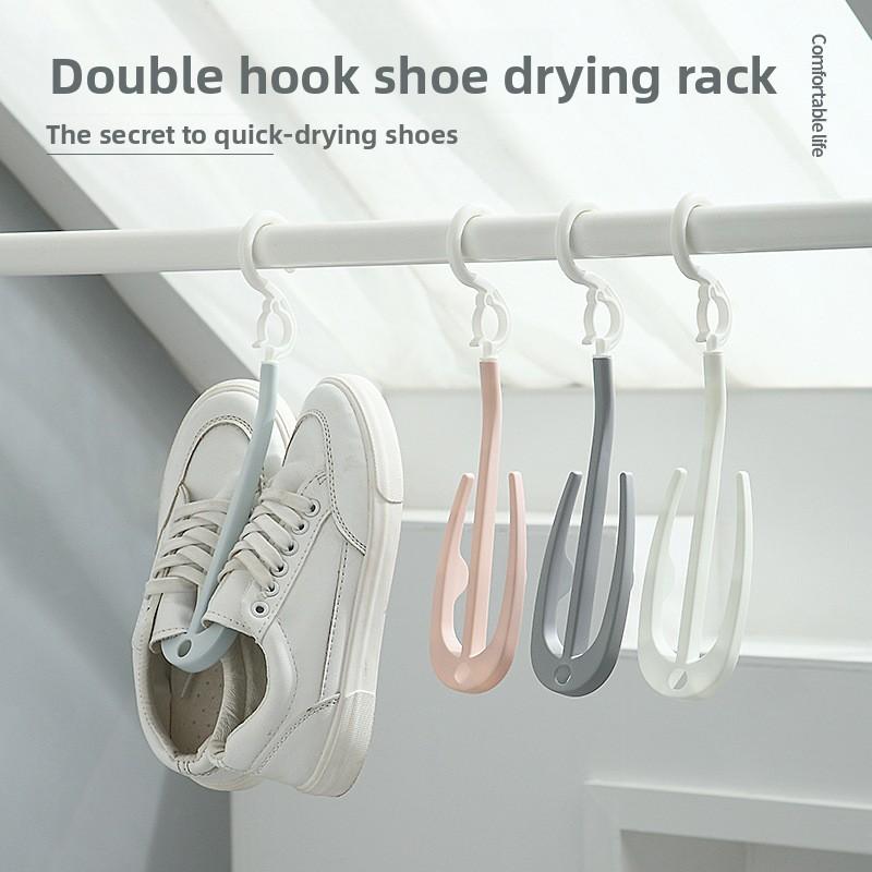 Double-hook Shoe Drying Rack, Multi-functional Rotating Shoe Hook for Balcony, Shoe Drying Rack and Clothes Drying Rack