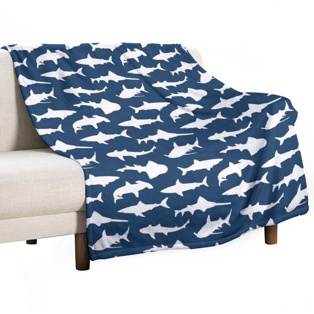 Sharks On Navy Blue Throw Blanket for Babies Cute Plaid Bed Plaid Fashion Sofas Blankets