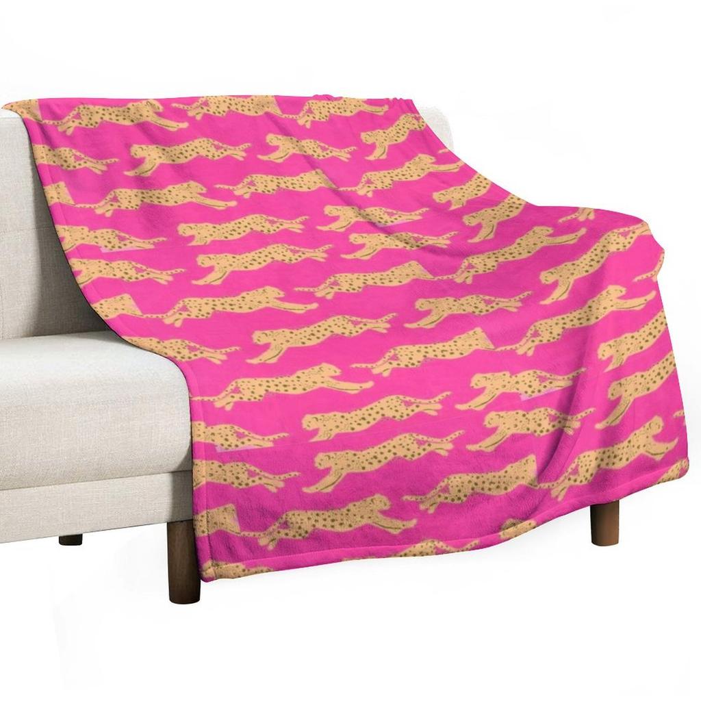 Pink Running Cheetahs Throw Blanket Furry Thermal Kid'S Custom Blankets