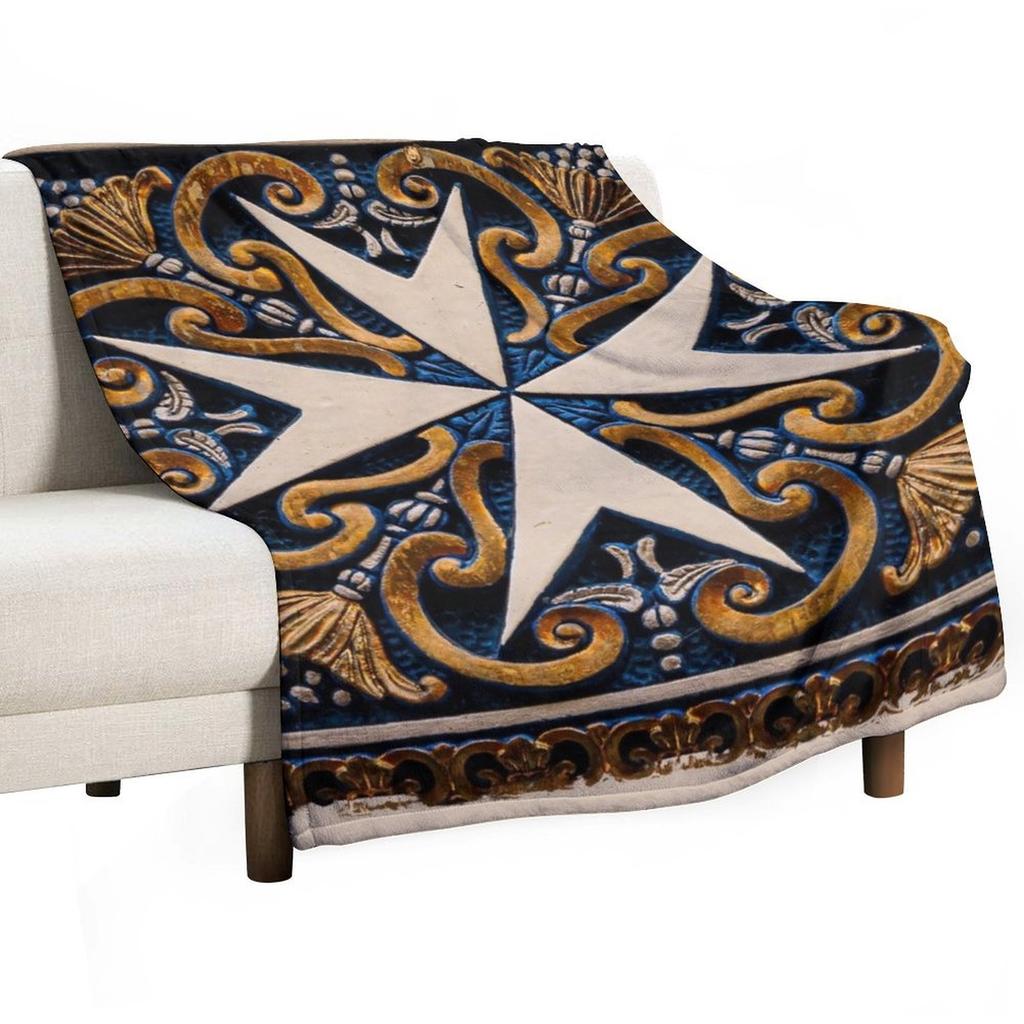 Maltese Tile Throw Blanket For Decorative Sofa Thermal Flannel Travel Blankets