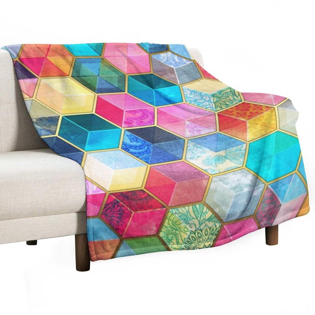 Crystal Bohemian Honeycomb Cubes - Colorful Hexagon Pattern Throw Blanket Loose Cute Bed Fashionable Plush Blankets