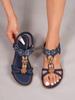 Women's New Summer Large Size Elastic Overleg Flat Floral Casual Sandals