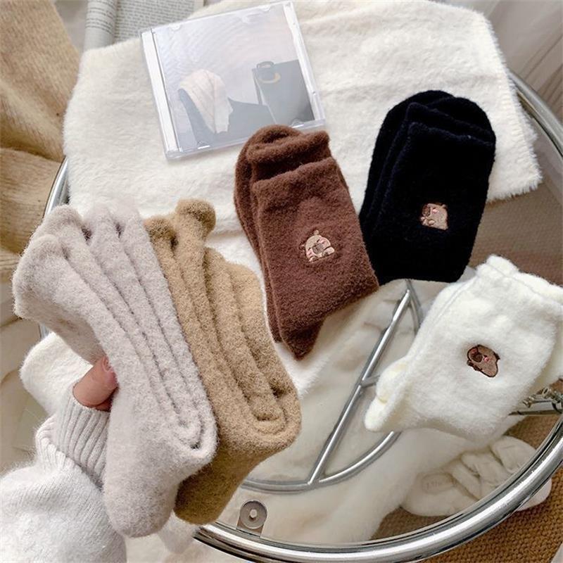 1/5 Pairs Cozy Hairy Mink Cute Capybara Mid-Calf Socks Women Autumn Winter Thicken Warmer Socks Sleep Floor Home Fluffy Sockings