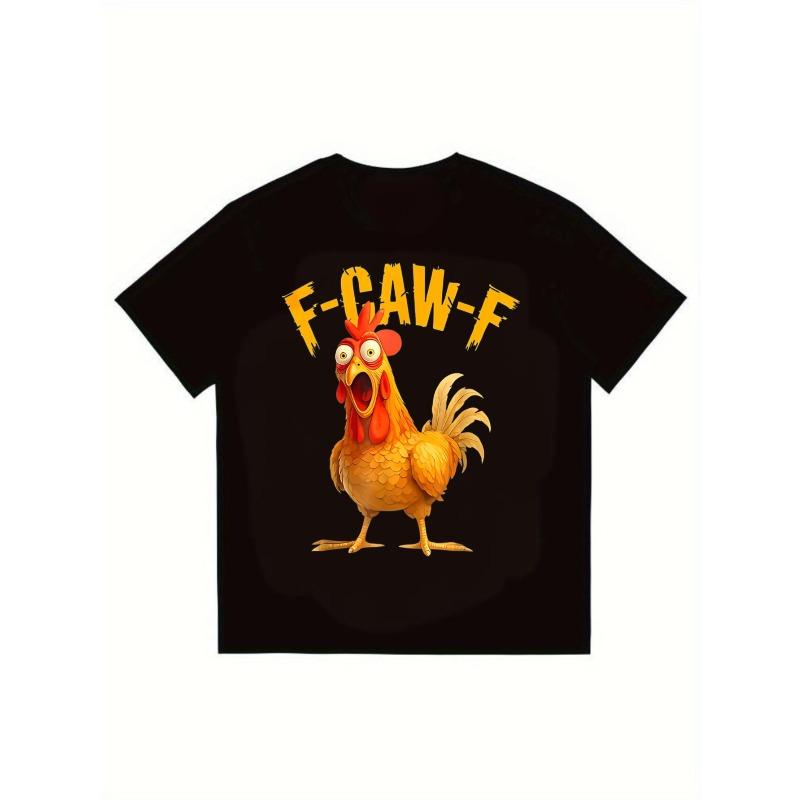 Men's Black T-Shirt F Caw F Chicken Graphic Print Casual Streetwear Top for Everyday Wear