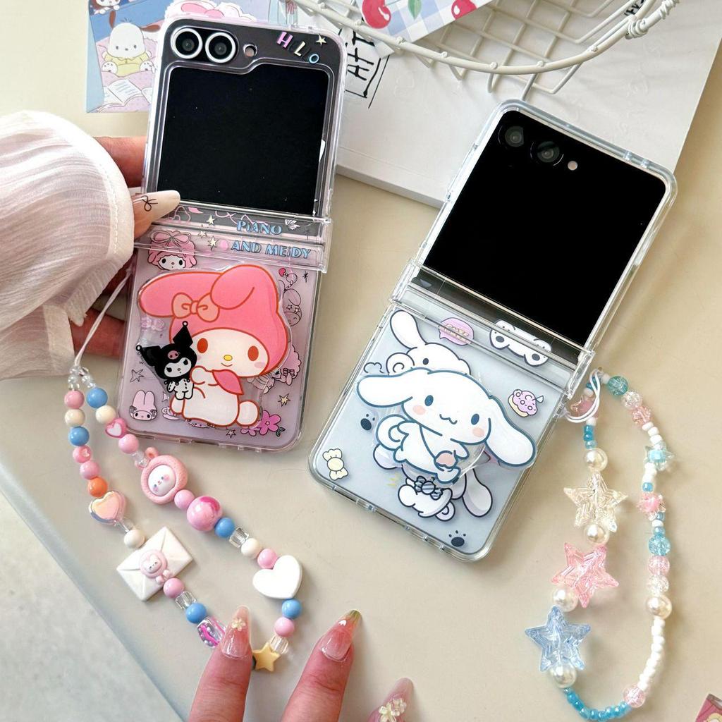 Cartoon My Melody & Cinnamoroll Samsung Z Flip6/7 Foldable Anti-Fall Phone Case for Women.