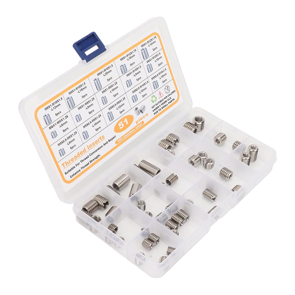 51 Pcs Thread Repair Insert Assortment Kit M5 To M8 Stainless Steel Screw Thread Repair Insert with Storage Box