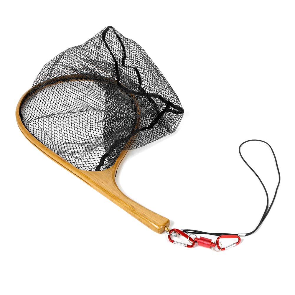 Yoomoo Fly Landing Net, Wooden and Rubber Net, Curved Pattern, for Mountain Stream Fishing, 3.5kg Neodymium Magnet (Crank, Handle, Large, White)