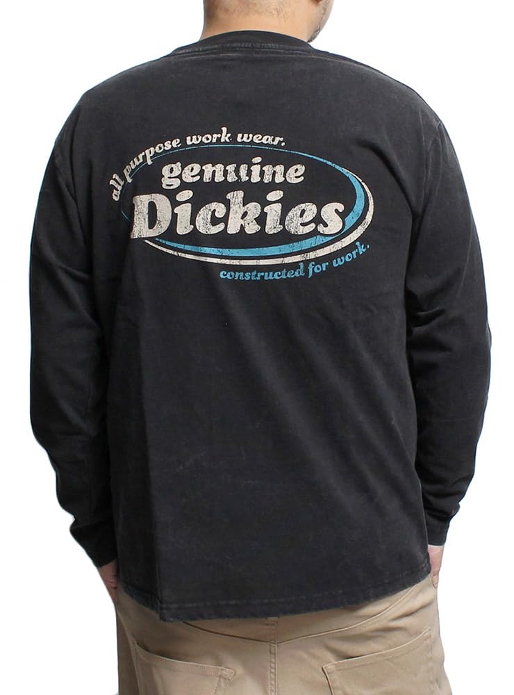 GENUINE DICKIES Men's Long Sleeve T-Shirt, Powder Bleached Print, Crew Neck, Size 4L, Black (50)
