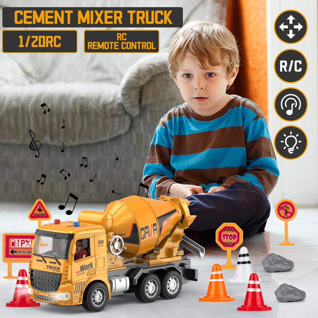 Kbdfa New 2-In-1 Six Way Remote Control Dump Truck+Mixer Truck Ssimulation Sound One Click Demonstration Children'S Toy