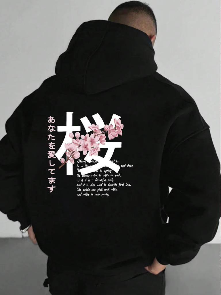 New Japan Sakura Print Men's and Women's Universal Hoodie Versatile Hoodie Casual Hoodie Fashion Street Hip Hop Street Clothing