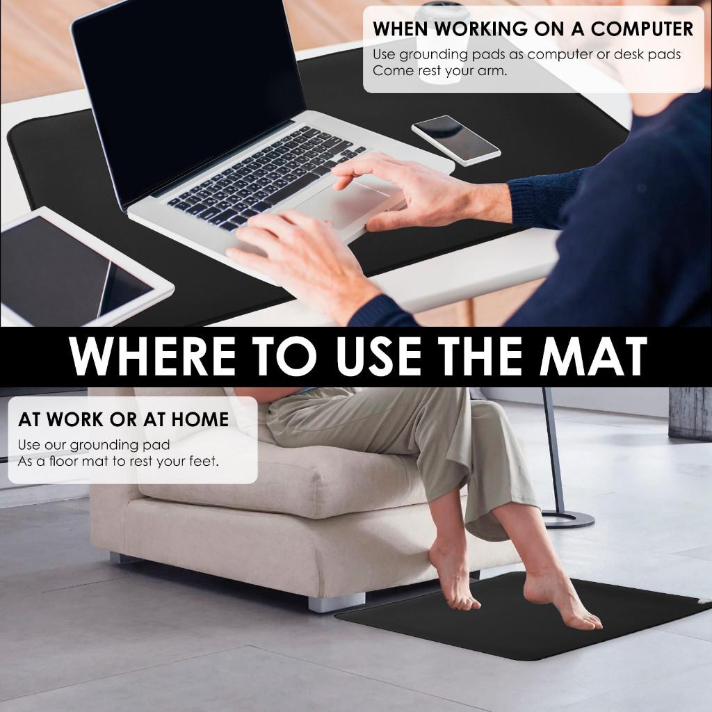 [Premium Conductive Material] Our grounding mat is crafted from premium, soft, nonslip rubber backing and topped with soft, conductive carbon fiber vegan leather. This mat allows you to connect to the earth's unlimited supply of free electrons indoors through your home's electrical grounding system, which is especially useful during the winter months when you may not be able to go barefoot outdoors.