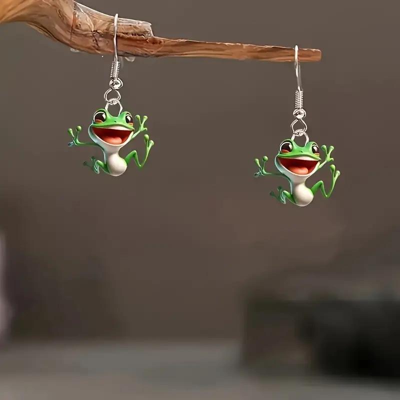 Cute and Funny Frog 2D Acrylic Earrings Fun Creative Design Animal Earrings