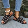 Large Size Summer Women's Fashionable Woven Flat-toe Open-back Sandals, with Adjustable Buckle Straps, Comfortable and Casual