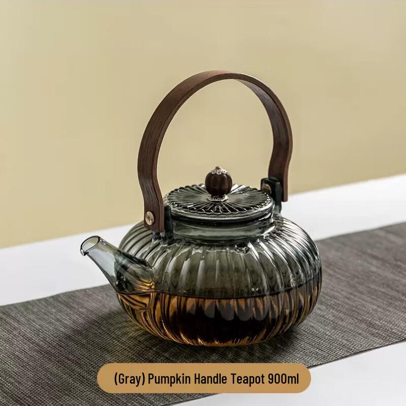 High Borosilicate Glass Pumpkin Beam Handle Teapot
