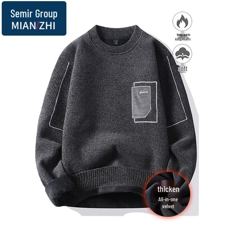 MianZhi Men's Crew Neck Fleece Lined Knit Sweater