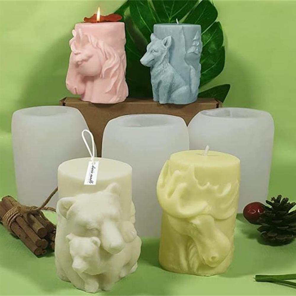 Animal Relief Silicone Candle Mold Wolf Bear Horse Elk Cylindrical Shape Mold for Handmade Candles Mould for Crafts Home Decor