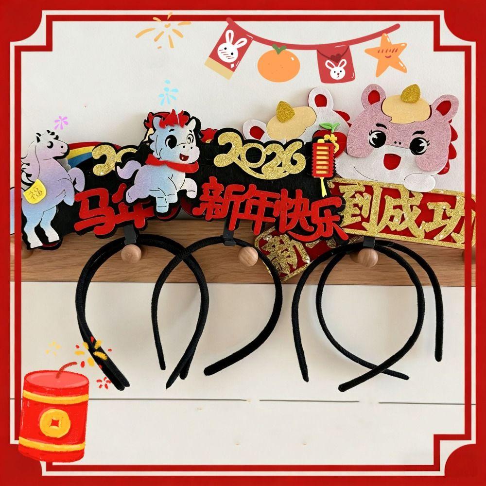 Mascot Horse 2026 Happy New Year Headband Cartoon New Year Headdress Horse Year Hairband Children
