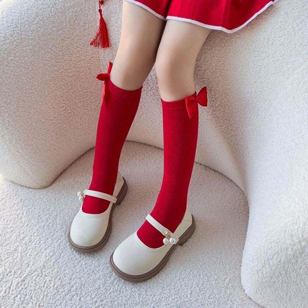 MidTube Bow Hosiery for Kids Cotton Children Long Socks Sleeping New Year Red Socks Autumn