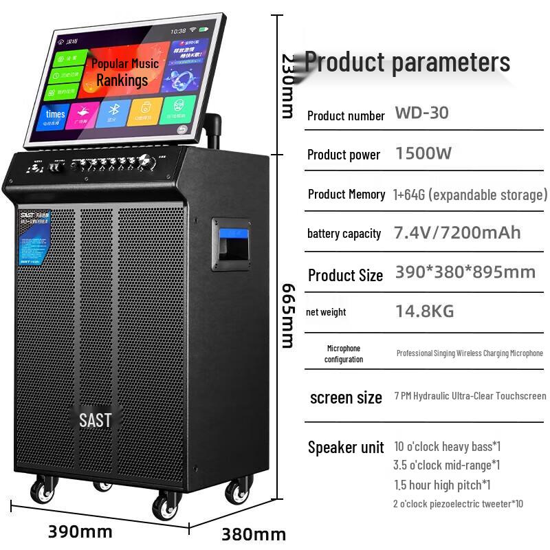 SAST WD-30 Portable Karaoke Machine with Display