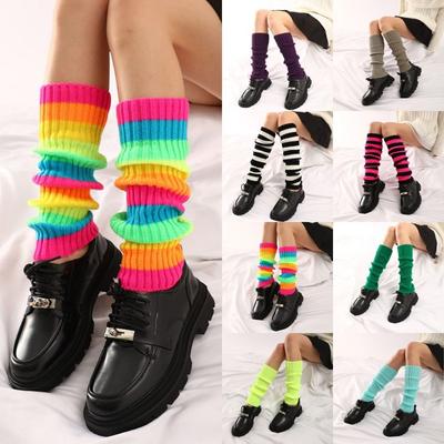 Y2K Neon Ribbed Leg Warmers Harajuku Knit Long Socks for Women & Girls