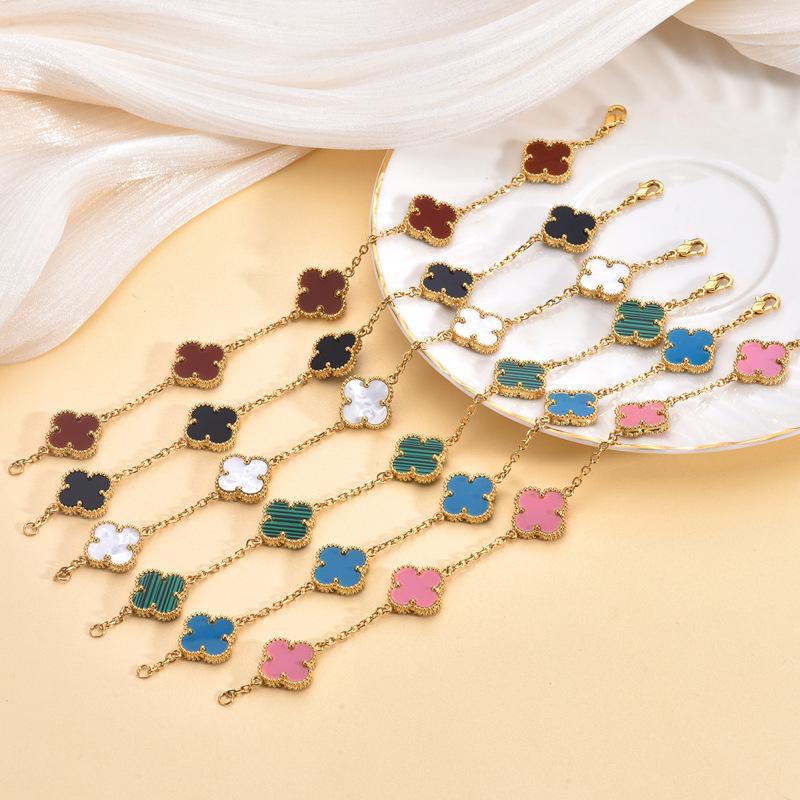 15mm Titanium Steel Double-Sided Four-Leaf Clover Bracelet Non-Fading Fashionable Four-Leaf Clover Flower Bracelet